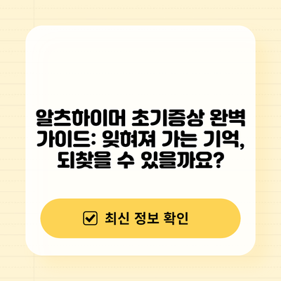 알츠하이머 초기증상 완벽 가이드: 잊혀져 가는 기억, 되찾을 수 있을까요?
