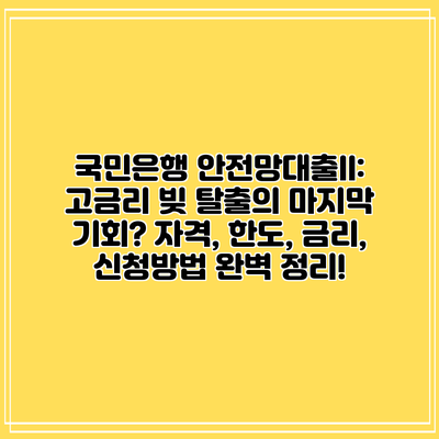 고금리 빚 때문에 힘드시다면? 국민은행 안전망대출II 자격조건, 한도, 금리 등 상세 정보를 확인하고 마지막 기회를 잡으세요!