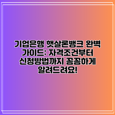 기업은행 햇살론뱅크 완벽 가이드: 자격조건부터 신청방법까지 꼼꼼하게 알려드려요!