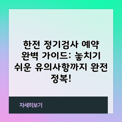 한전 정기검사 예약, 놓치면 손해 볼 수 있어요! 꼼꼼한 예약 가이드와 유의사항을 지금 바로 확인하고 안전하게 검사받으세요.