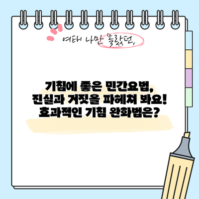 기침 뚝! 효과적인 민간요법, 정말 효과 있을까요? 과학적으로 검증된 방법과 잘못된 속설을 알아보고, 나에게 맞는 기침 완화법을 찾아보세요!
