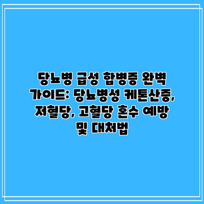 당뇨병 급성 합병증, 제대로 알고 예방 및 대처하세요! 당뇨병성 케톤산증, 저혈당, 고혈당 혼수 증상과 대처법을 자세히 알아보고 안전하게 관리하는 방법을 확인해보세요.