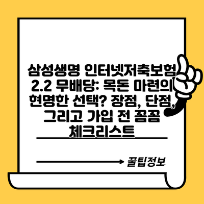 ✅ 삼성생명 인터넷저축보험 2.2 무배당이 정말 목돈 마련에 최선일까요? 장점과 단점 비교분석 및 가입 전 필수 체크리스트 확인하세요!