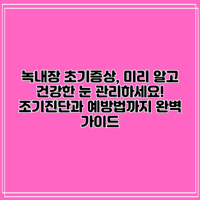 녹내장 초기 증상, 놓치지 말고 지금 바로 확인하세요! 조기 진단과 예방법도 함께 알아보세요.