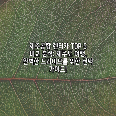 제주공항 렌터카 TOP 5 비교 분석: 제주도 여행, 완벽한 드라이브를 위한 선택 가이드!