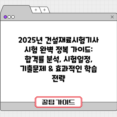 2025년 건설재료시험기사 시험 완벽 정복 가이드: 합격률 분석, 시험일정, 기출문제 & 효과적인 학습 전략