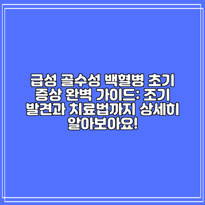 급성 골수성 백혈병 초기 증상 완벽 가이드: 조기 발견과 치료법까지 상세히 알아보아요!