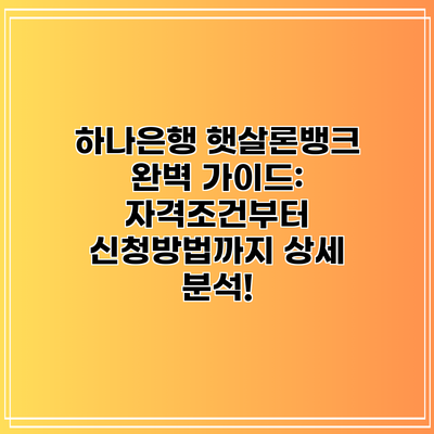 하나은행 햇살론뱅크 완벽 가이드: 자격조건부터 신청방법까지 상세 분석!