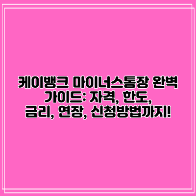 케이뱅크 마이너스통장 완벽 가이드: 자격, 한도, 금리, 연장, 신청방법까지!