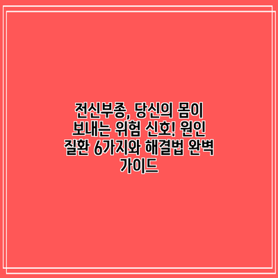 ✅ 전신부종, 단순히 부기일 뿐일까요? 원인 질환 6가지와 나에게 맞는 해결책을 찾아보세요! 심각한 질병의 신호일 수도 있습니다. 지금 바로 확인하세요.