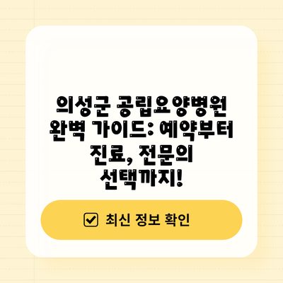 ✅ 의성군 공립요양병원 예약 및 진료 절차가 궁금하신가요? 편리한 예약 시스템과 자세한 안내를 확인하세요!
