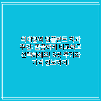 ✅ 외대앞역 6곳 임플란트 치과의 가격과 후기를 자세히 비교분석해보세요! 어떤 치과가 나에게 맞을지 고민이시라면, 지금 바로 확인하세요!