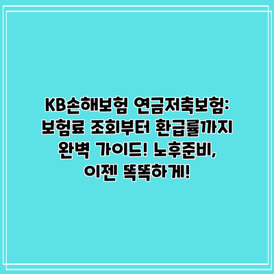 KB손해보험 연금저축보험: 보험료 조회부터 환급률까지 완벽 가이드! 노후준비, 이젠 똑똑하게!