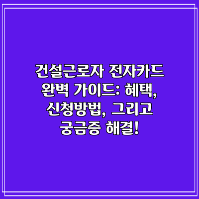 건설근로자 전자카드 완벽 가이드: 혜택, 신청방법, 그리고 궁금증 해결!