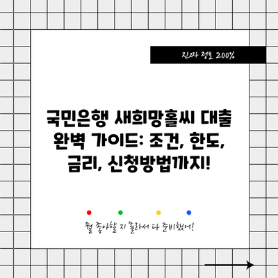 국민은행 새희망홀씨 대출 완벽 가이드: 조건, 한도, 금리, 신청방법까지!