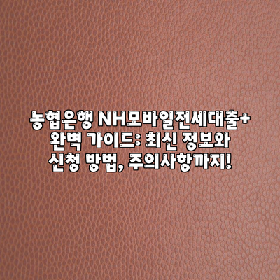 농협은행 NH모바일전세대출+ 완벽 가이드: 최신 정보와 신청 방법, 주의사항까지!