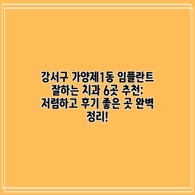 강서구 가양제1동 임플란트 잘하는 치과 6곳 추천: 저렴하고 후기 좋은 곳 완벽 정리!