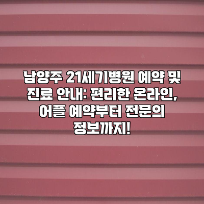 남양주 21세기병원 예약 및 진료 안내: 편리한 온라인, 어플 예약부터 전문의 정보까지!