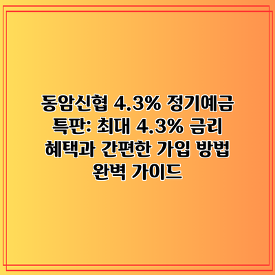 동암신협 4.3% 정기예금 특판: 최대 4.3% 금리 혜택과 간편한 가입 방법 완벽 가이드