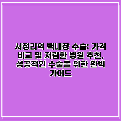서정리역 백내장 수술: 가격 비교 및 저렴한 병원 추천, 성공적인 수술을 위한 완벽 가이드