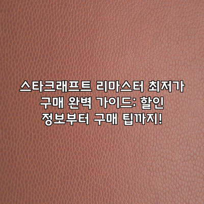 스타크래프트 리마스터 최저가 구매 완벽 가이드: 할인 정보부터 구매 팁까지!