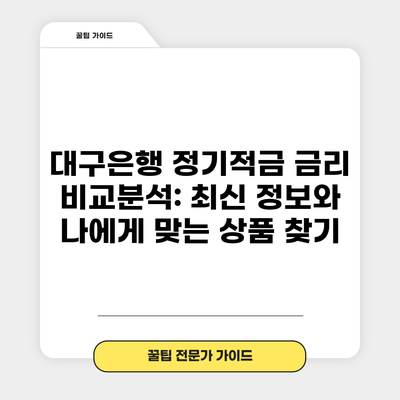 대구은행 정기적금 금리 비교분석: 최신 정보와 나에게 맞는 상품 찾기