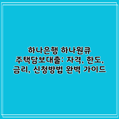 하나은행 하나원큐 주택담보대출: 자격, 한도, 금리, 신청방법 완벽 가이드